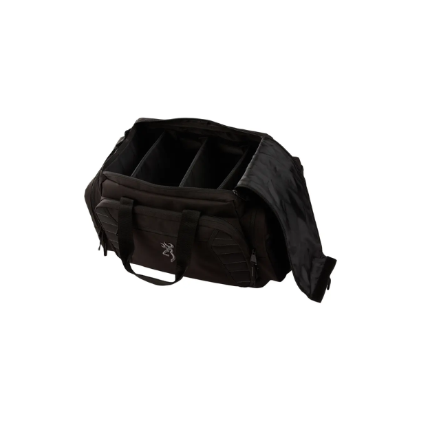 The construction of the bag is built for the long haul. The tough ripstop polyester fabric features fully bound sewn edges for added durability with heavy loads. The waterproof PVC lining also has sewn and bound internal seams for reliable protection from the elements. The reinforced nylon web handles and shoulder strap both include padding to make transporting your essentials to the firing line comfortable.