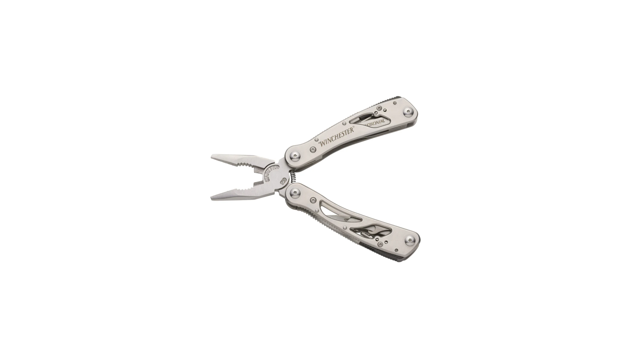 Constructed using rugged stainless steel, the Winchester Multi-Tool puts a toolbox with 13 integrated tools at your fingertips. The textured grips provide you with an exceptional grasp in tough conditions. A nylon belt sheath keeps the multi-tool secure and within quick reach.