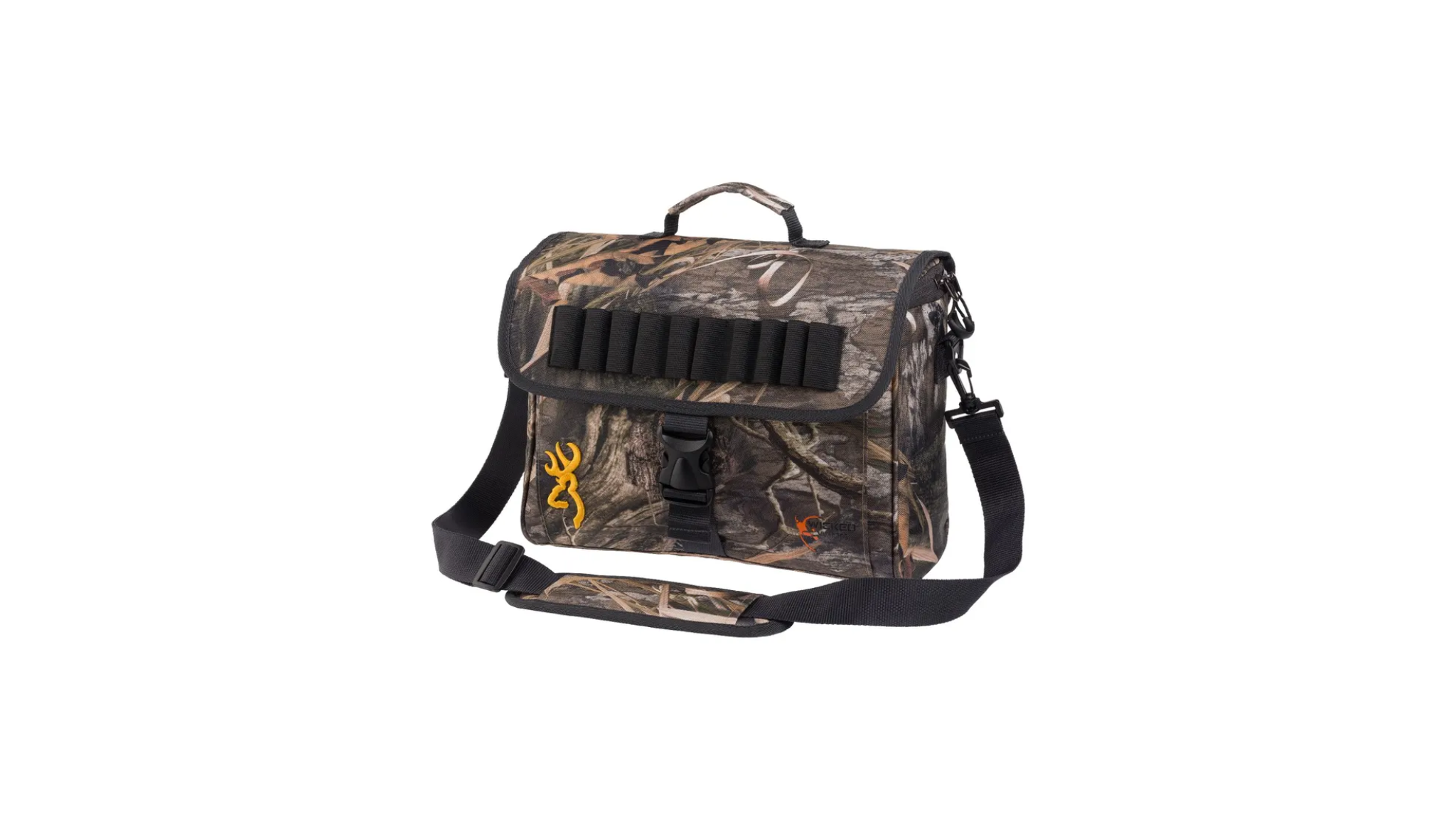 The Wicked Wing Shoulder Bag holds a waterfowler’s essentials. Padded shoulder strap and carry handle are adjustable. Water-resistant PVC-backed polyester fabric with zip closure. Flap features shell loops and secure buckle closure.